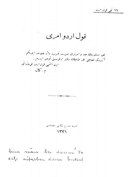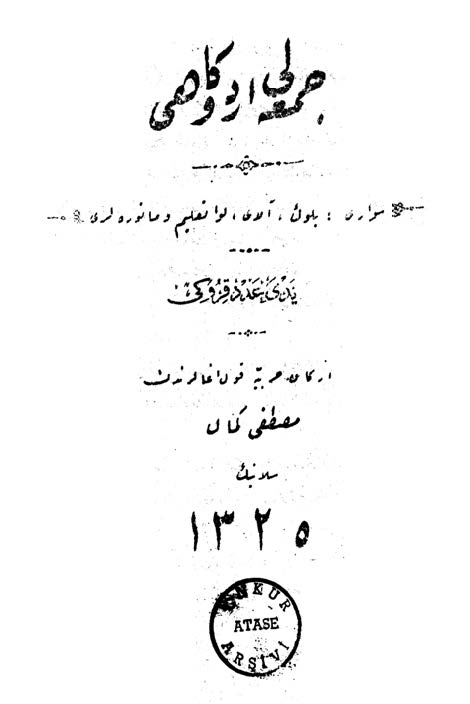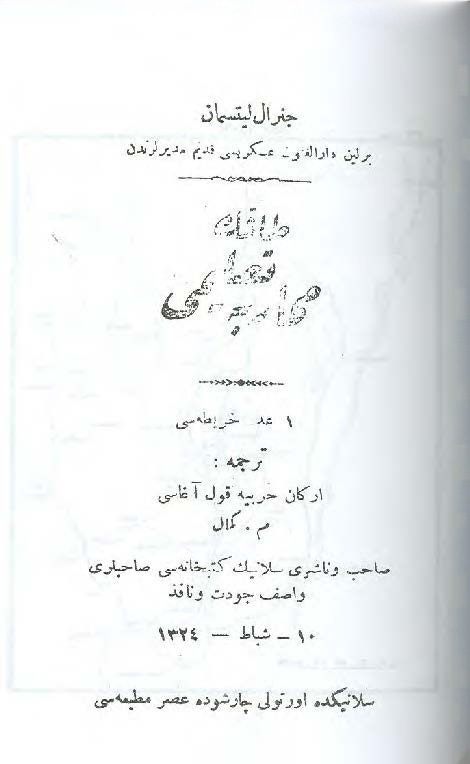 Ce livre constitue la première partie de l’œuvre du Général Litzmann, ancien directeur de l’Université militaire de Berlin, intitulée Instructions de combat pour la section, la compagnie et le bataillon en effectif de guerre. Il fut traduit de l’allemand vers l’ottoman par le Capitaine supérieur d’état-major Mustafa Kemal, en poste au Quartier général de la 3e Armée à Salonique, et fut imprimé en 1908 à l’imprimerie Asır de Salonique.